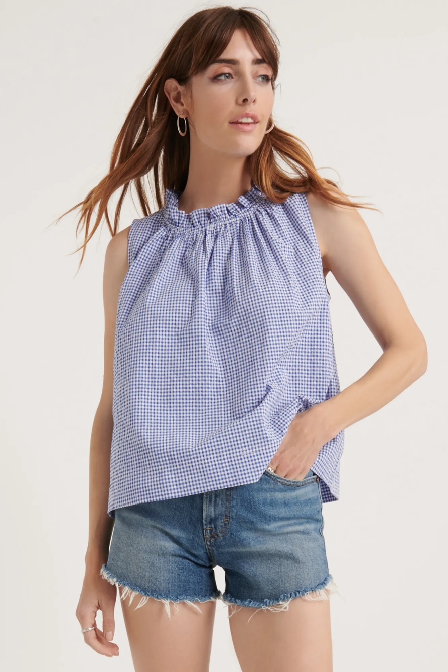 pomegranate gingham ruffle neck blouse