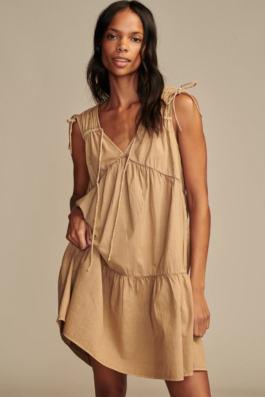 poplin shoulder cinched mini dress