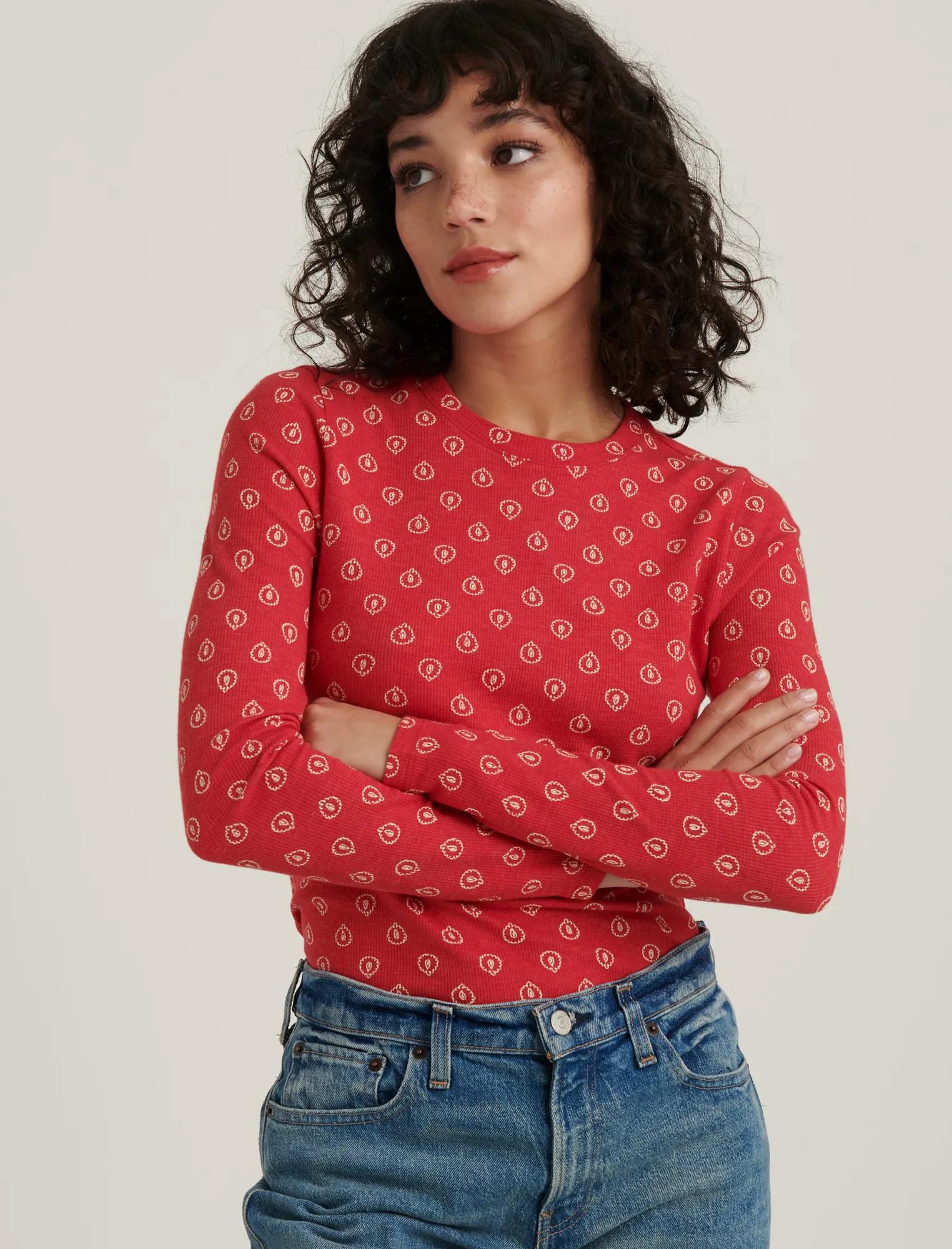 printed crew thermal top