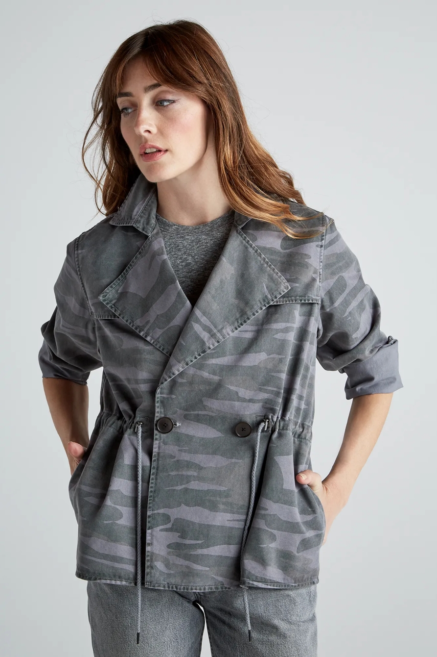 printed cropped trench coat jacket