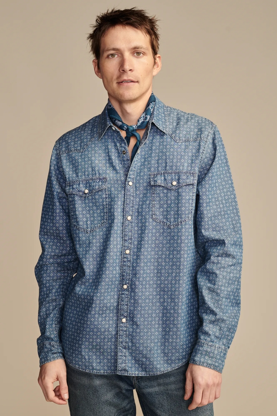 printed indigo western long sleeve shirt