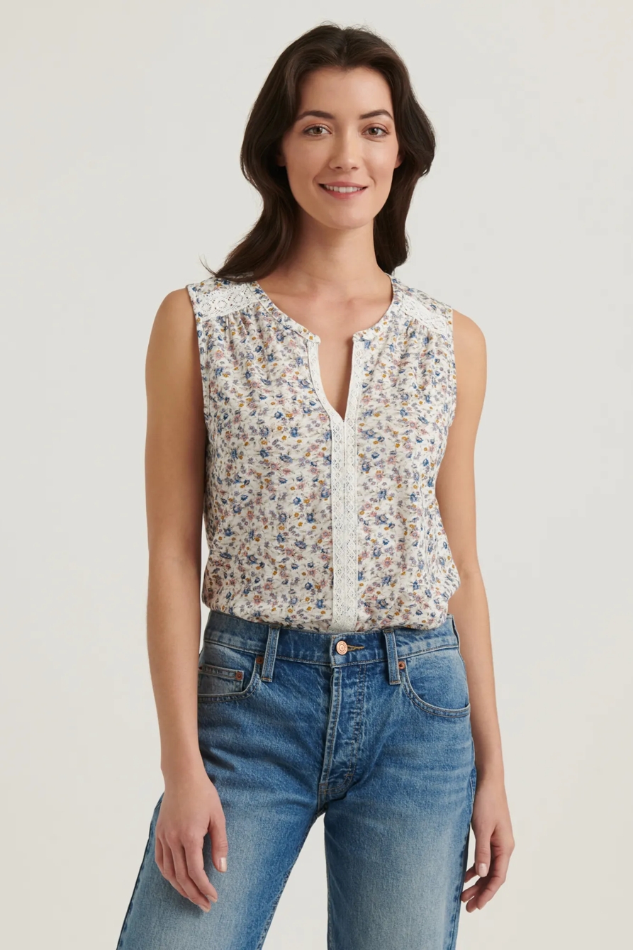 printed lace yoke top