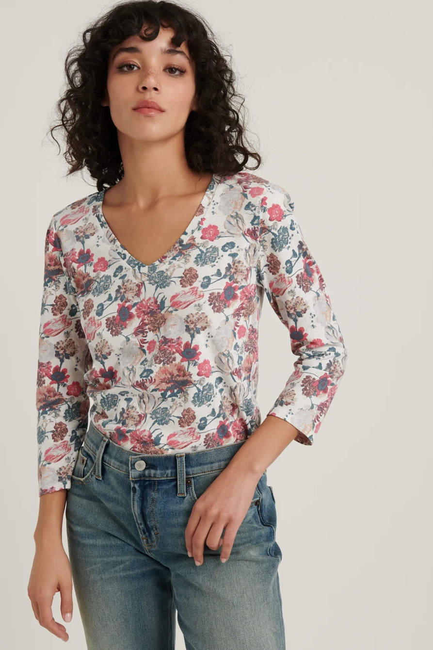 printed puff sleeve v-neck tee