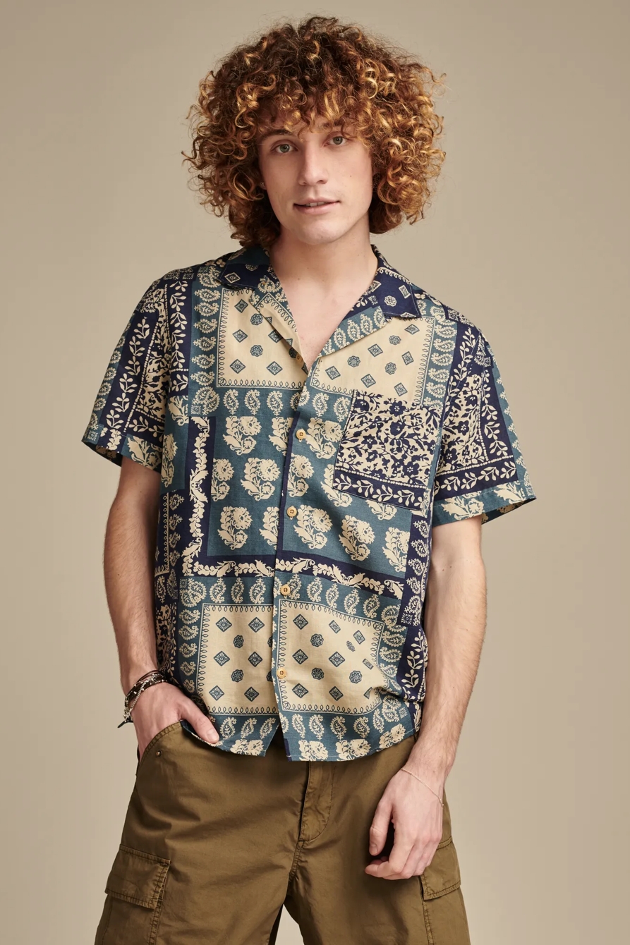 printed short sleeve camp collar shirt