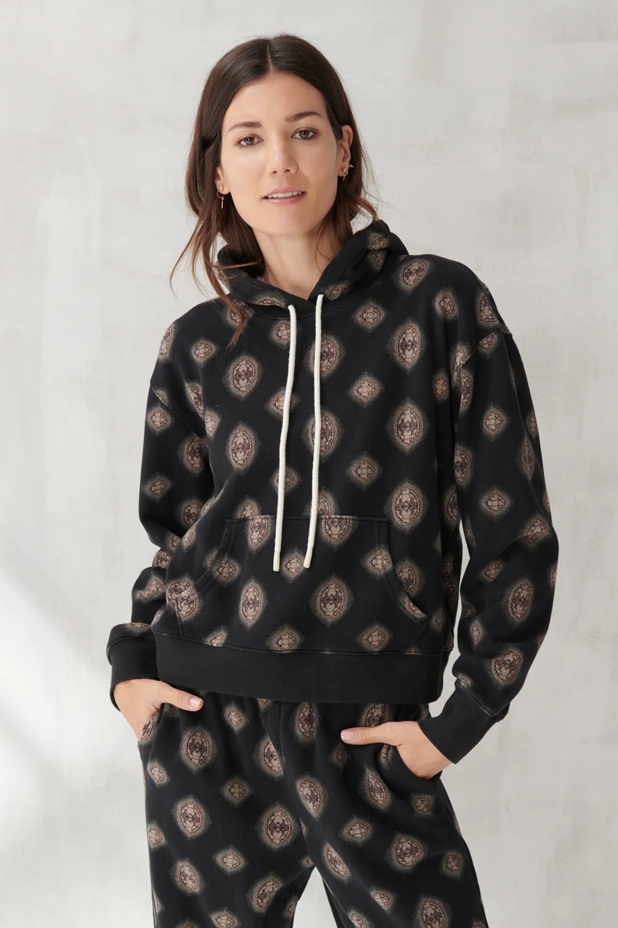 printed sueded terry hoodie