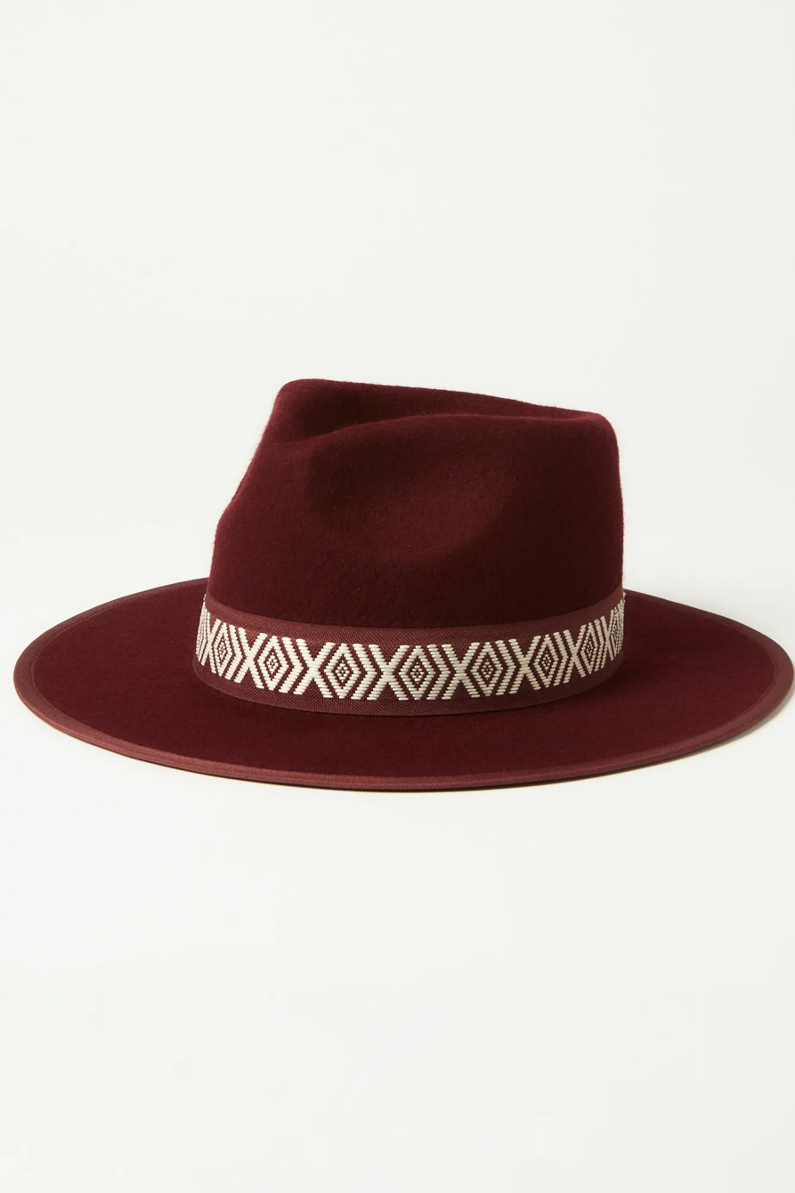 printed trim wide brim wool hat