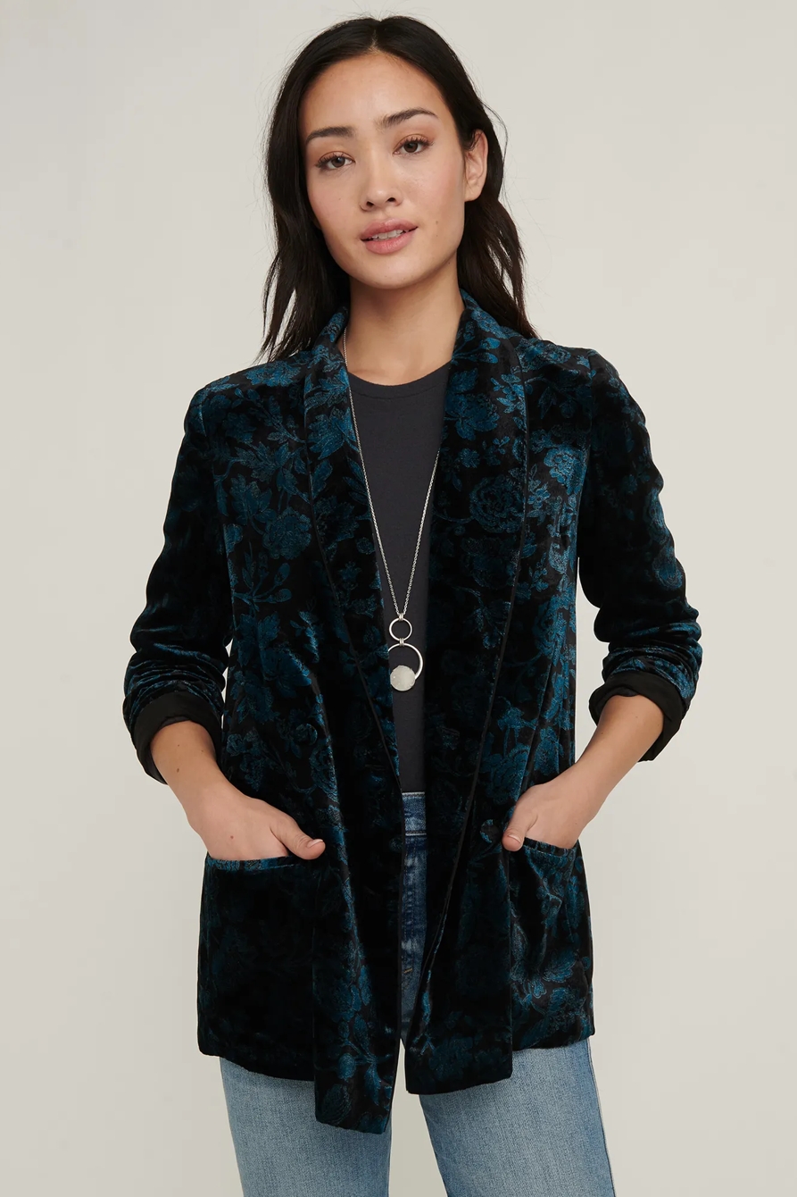 printed velvet blazer