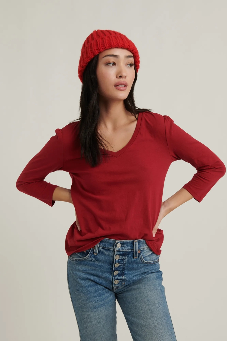 puff sleeve v-neck tee