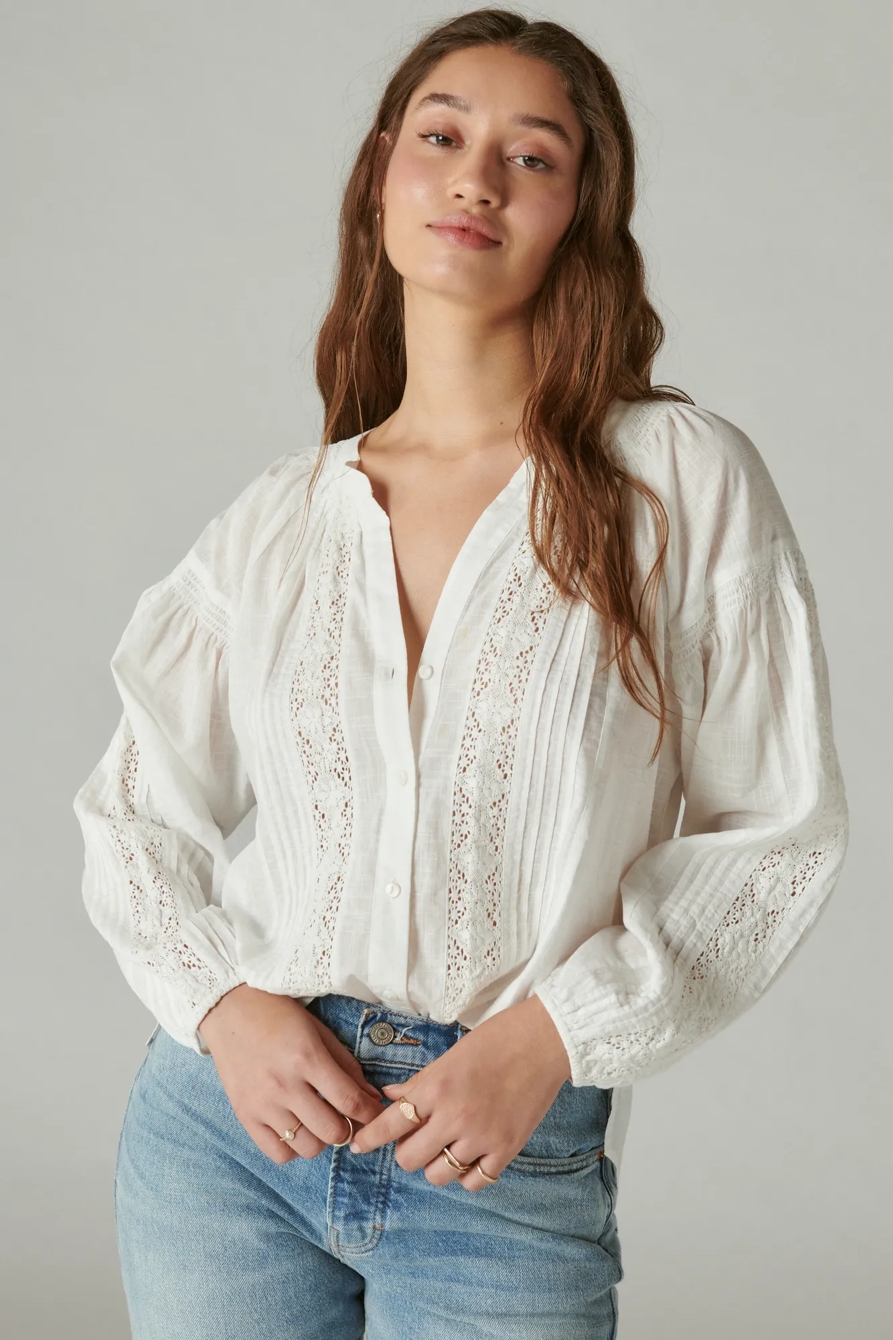 relaxed lace open neckshirt