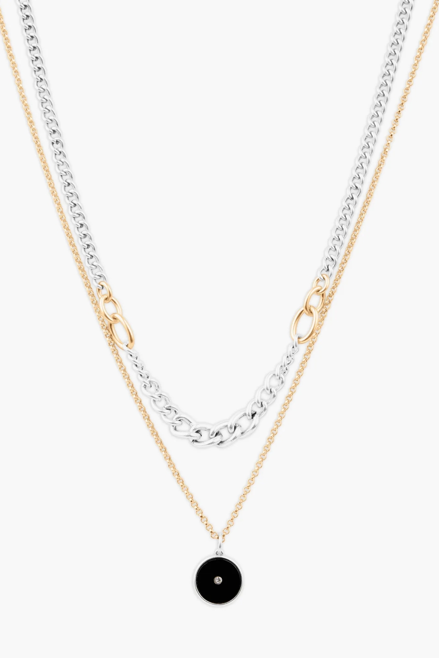 reversible onyx charm chain layer necklace