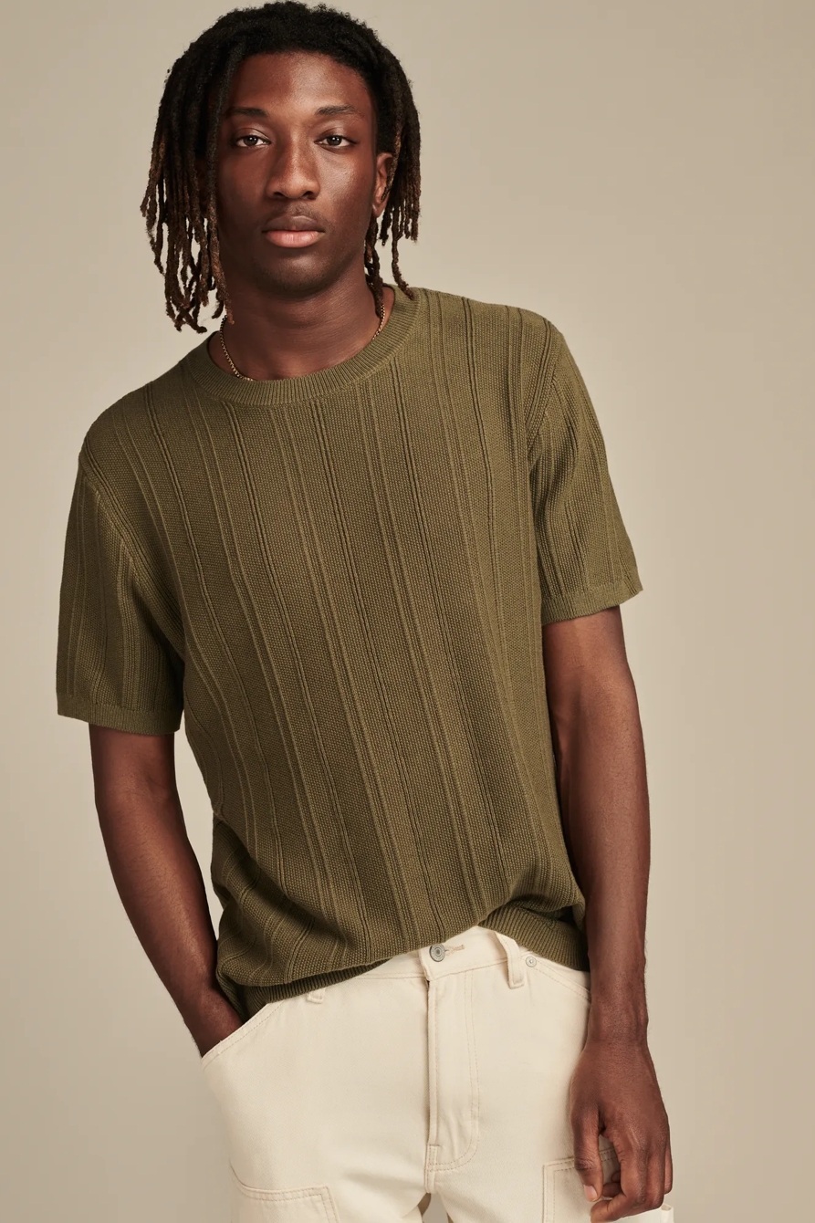 ribbed fine gauge short sleeve sweater