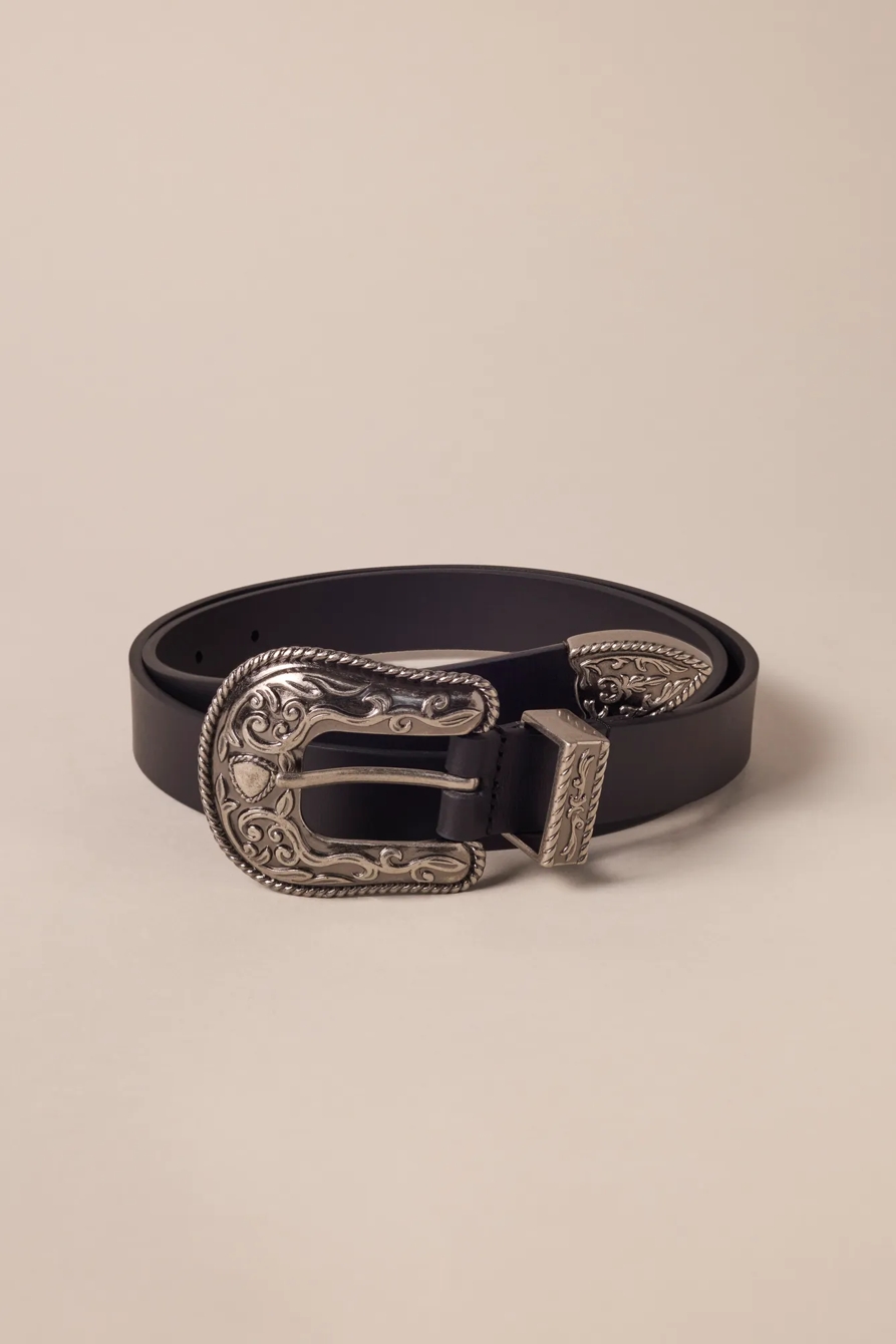 rope engraved western buckle leather belt