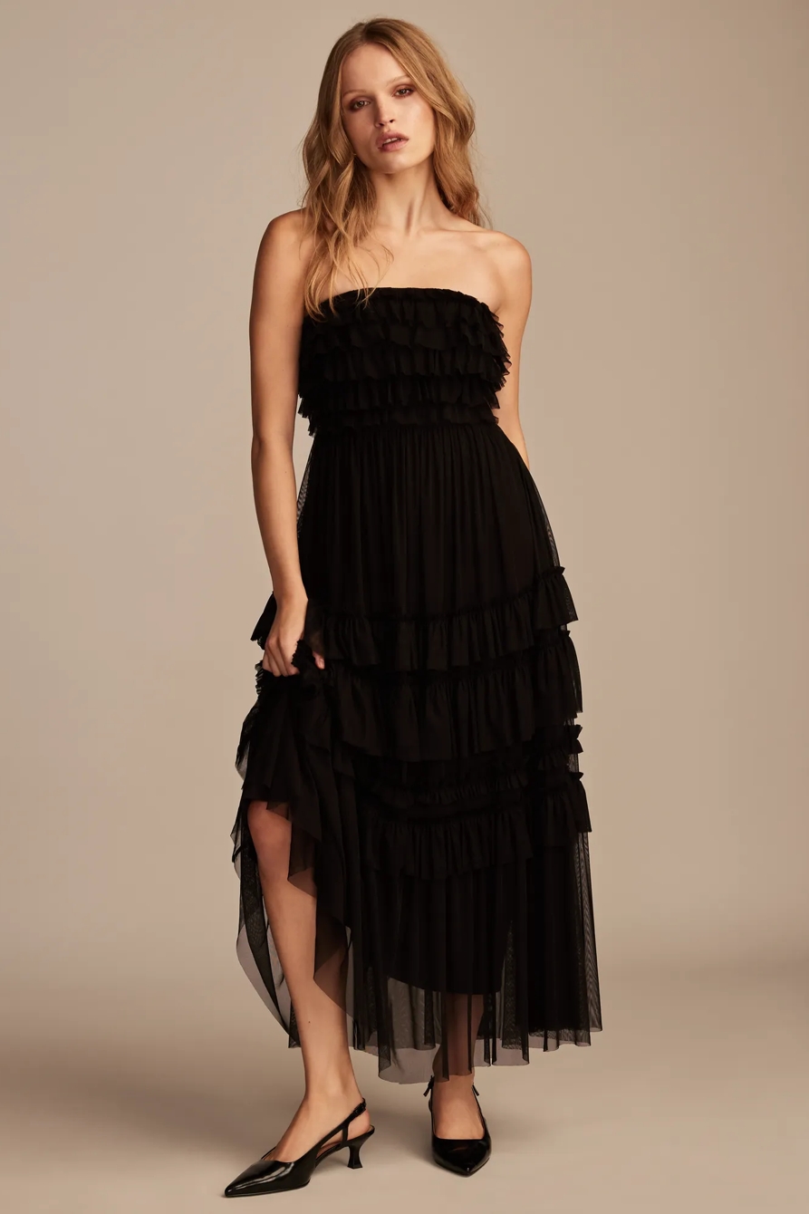 ruffle tube maxi dress