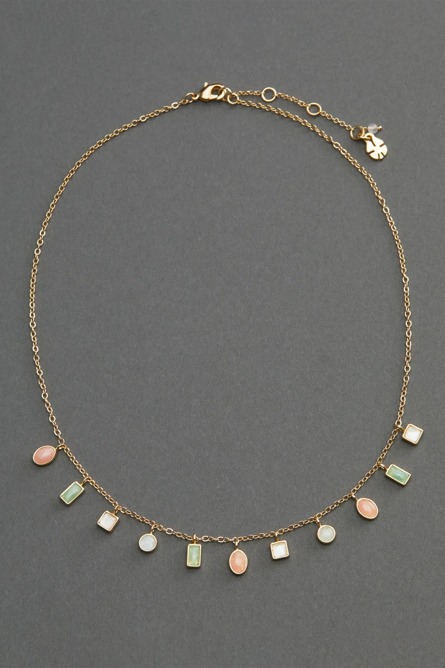 set stone charm collar necklace