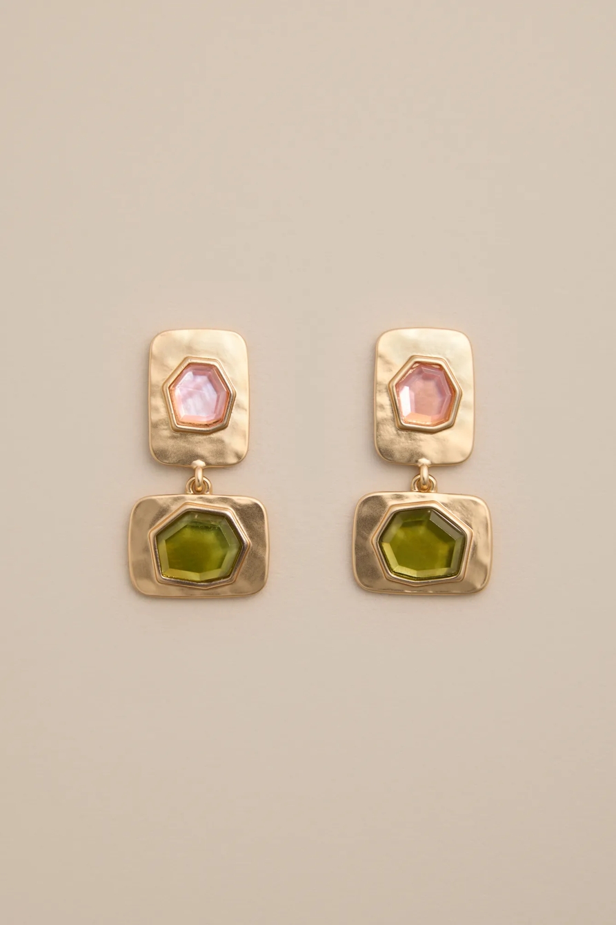 set stone double drop earrings