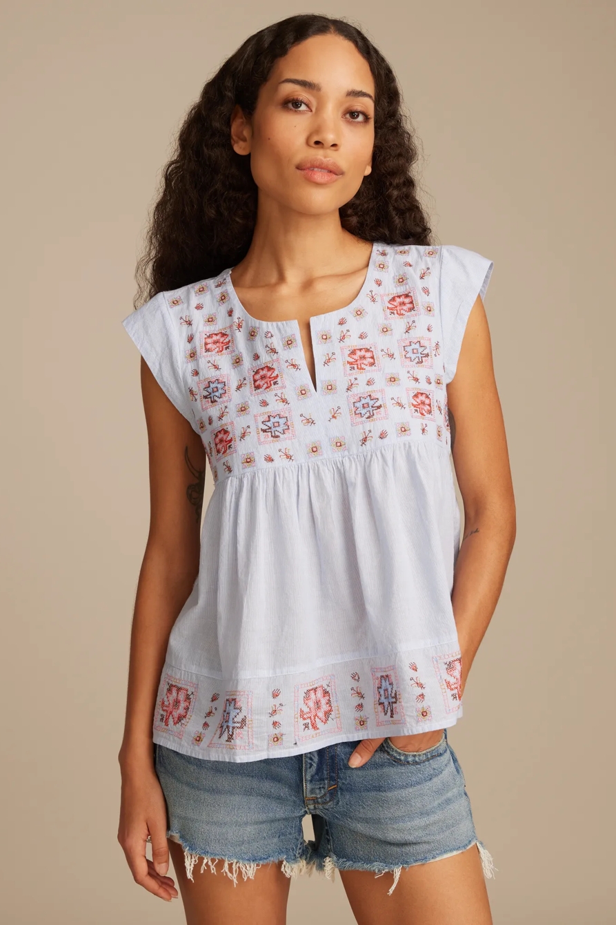 shell sleeve peasant blouse