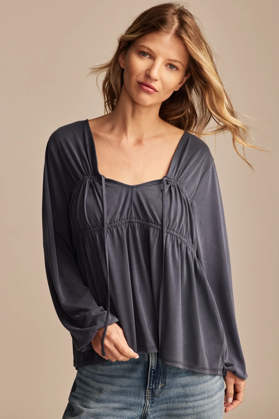 shirred tie front sandwash top