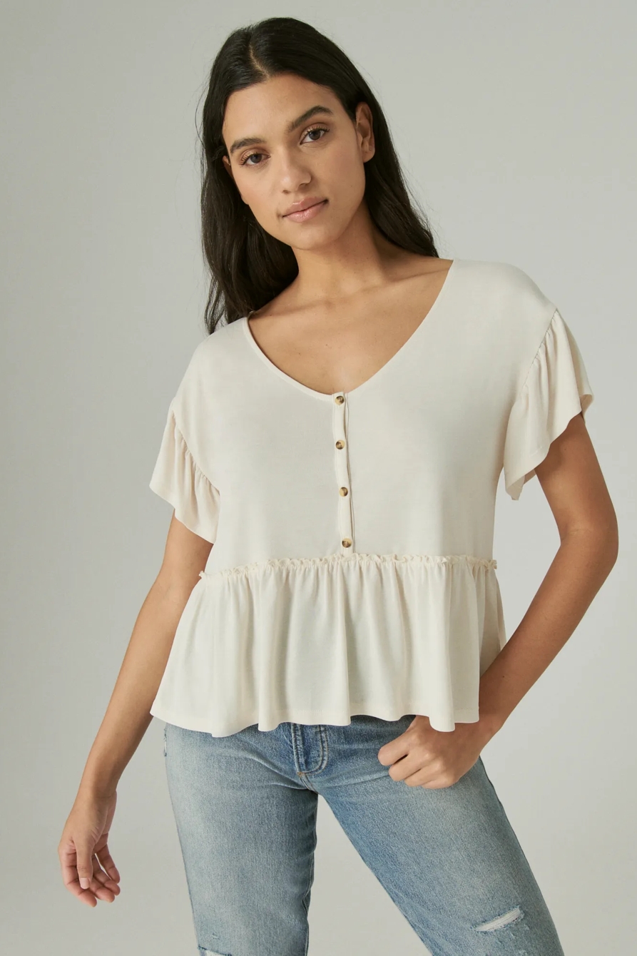 short sleeve button top