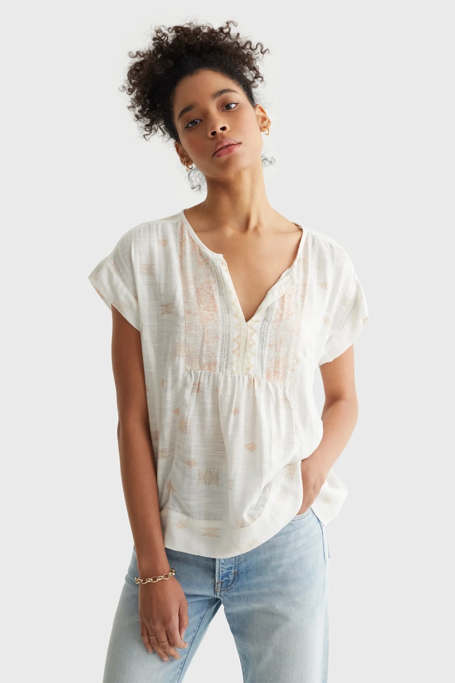 short sleeve printed peasant
