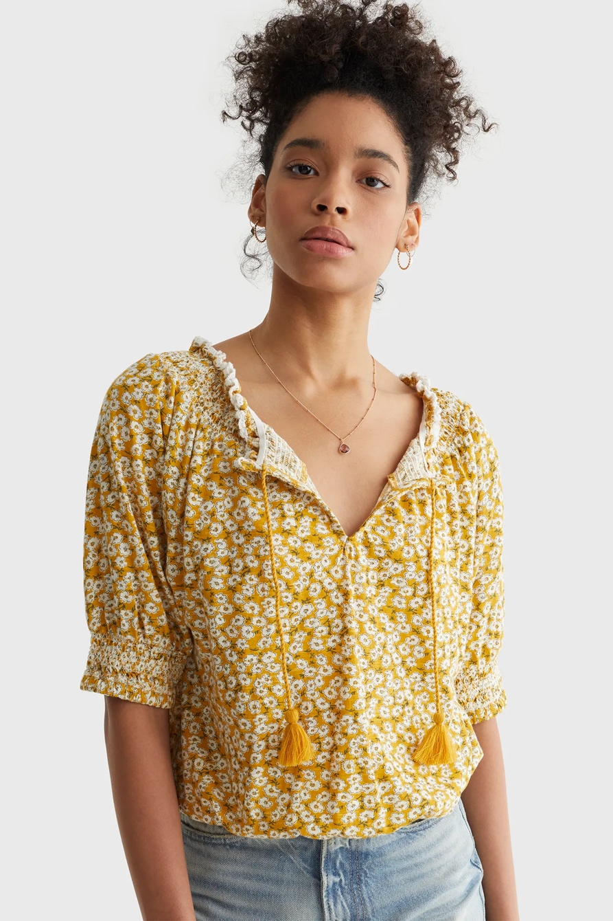 short sleeve tie front peasant