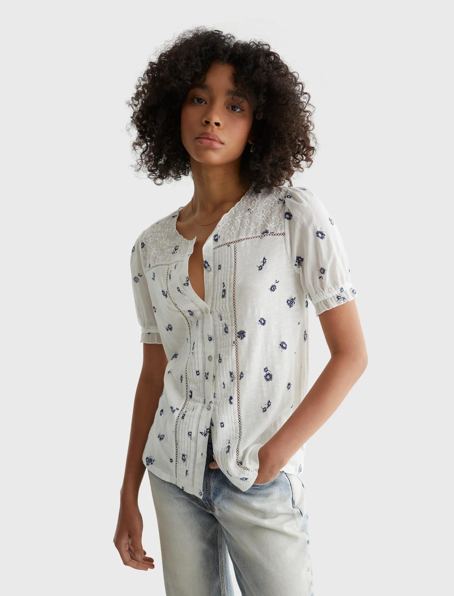 short sleeve woven mix printed top