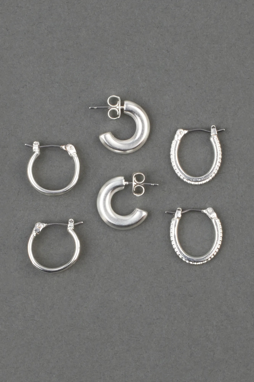 silver huggie hoop set
