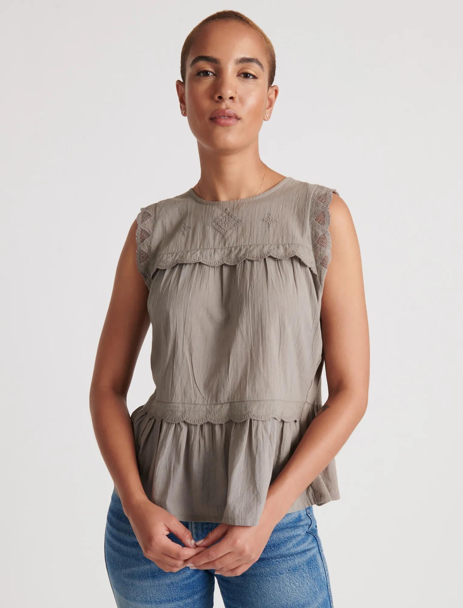 sleeveless knit woven mix blouse top
