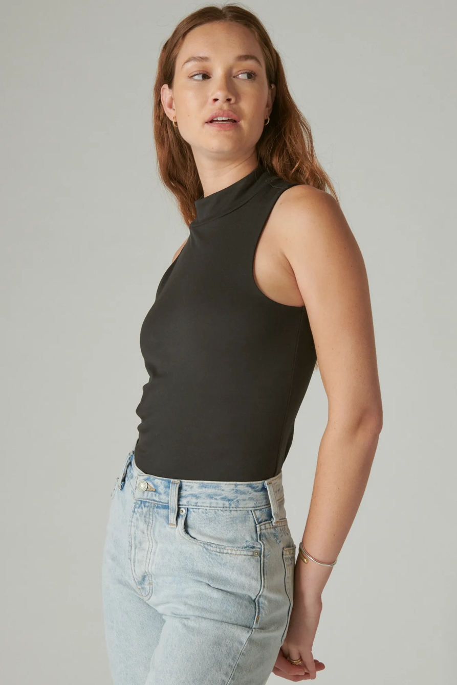 sleeveless mock neck top