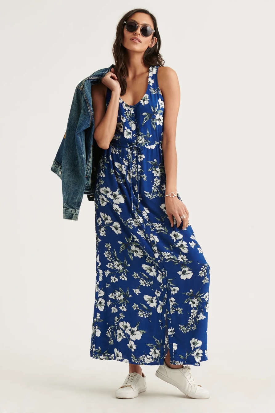 sleeveless tie waist maxi dress