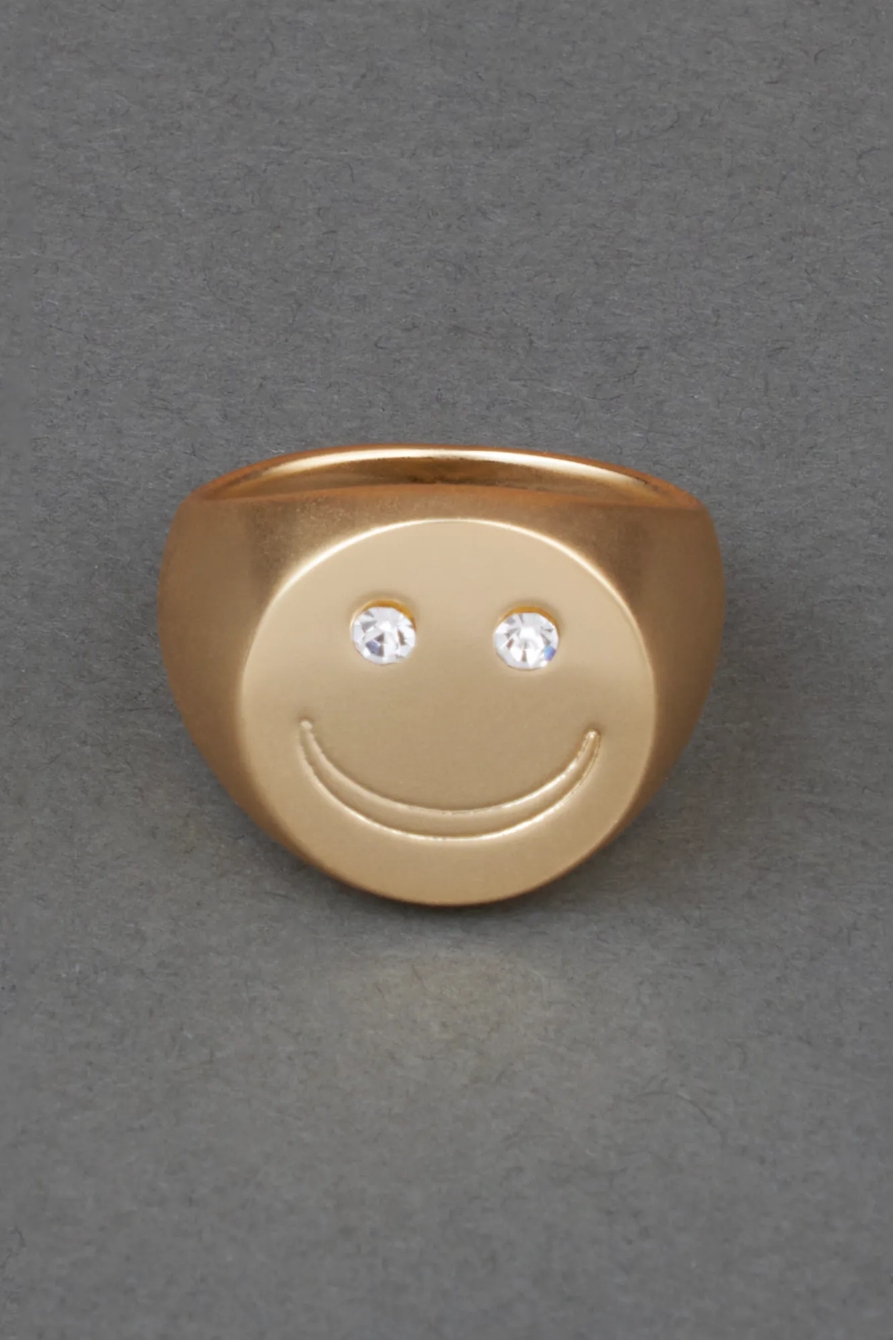smiley pave signet ring