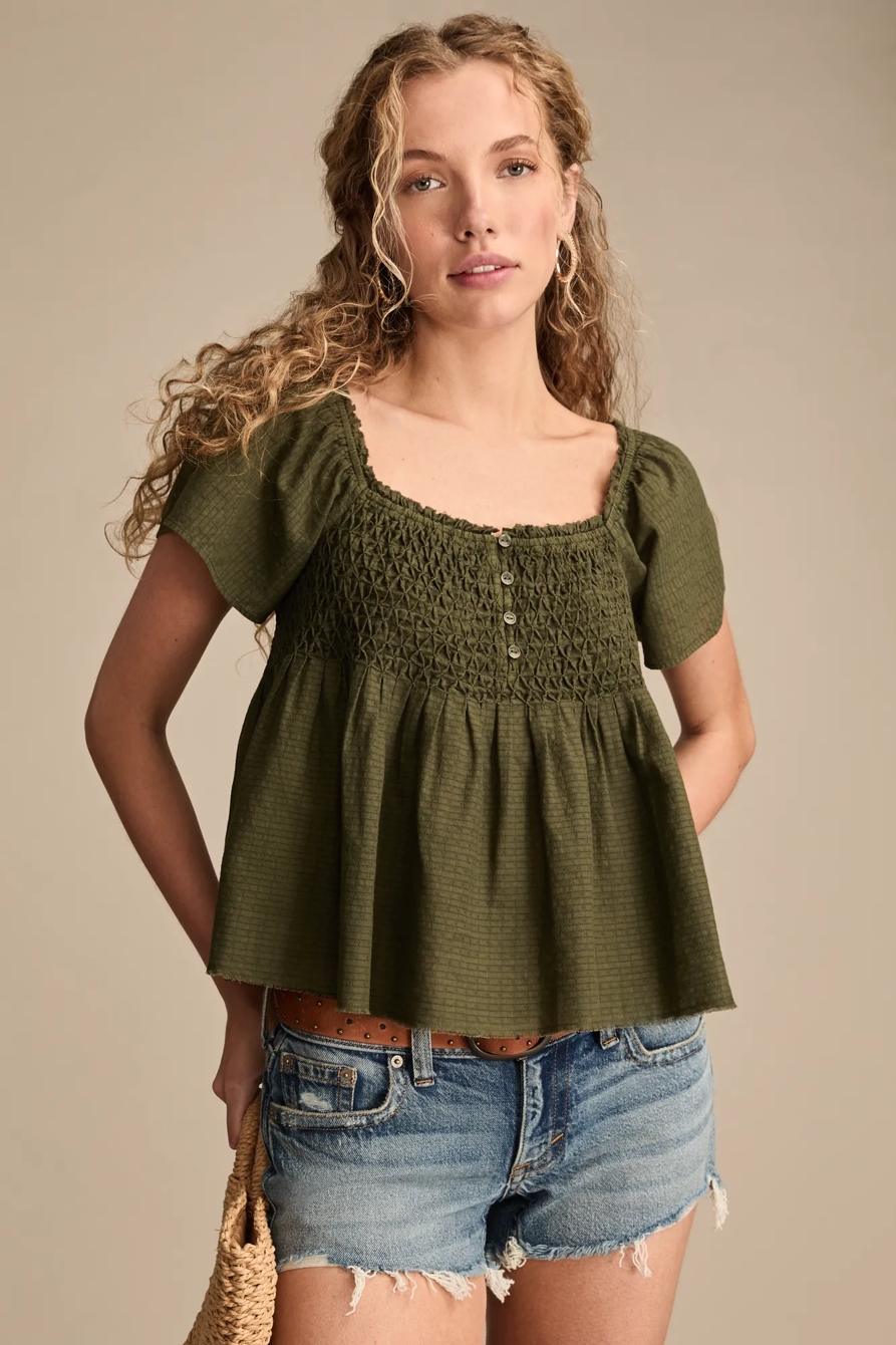 smocked bodice babydoll top