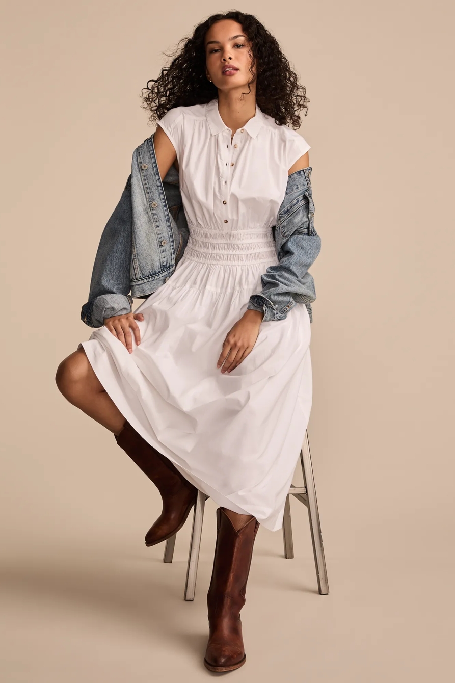 smocked dropped waist midi dress
