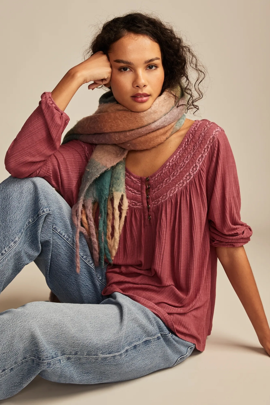 smocked lace yoke henley
