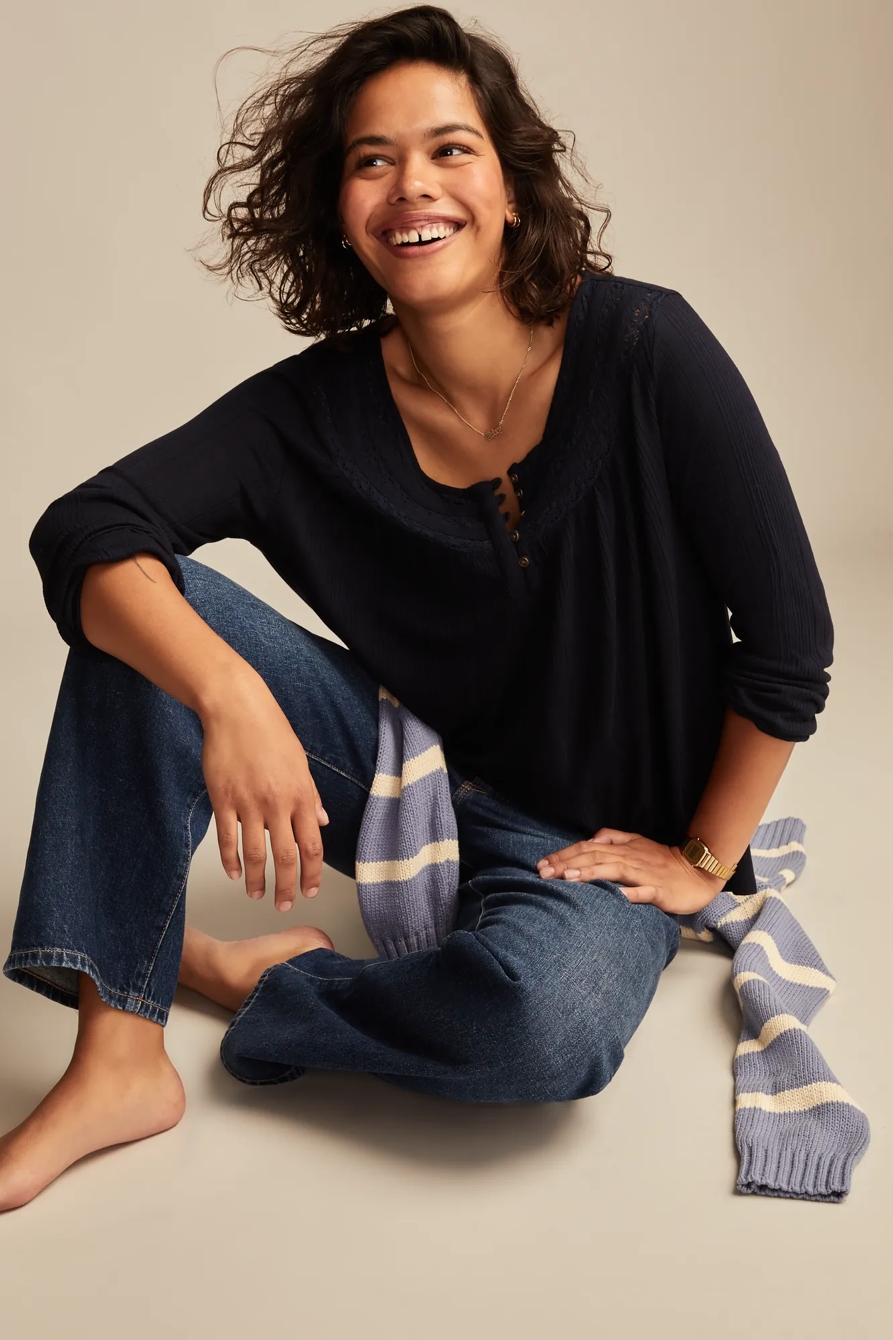 smocked lace yoke henley