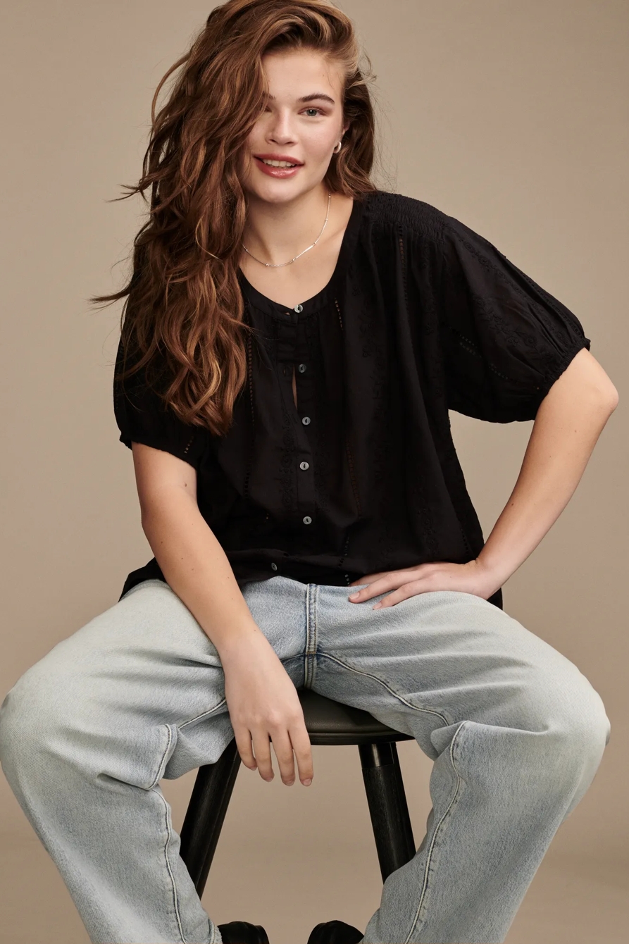 smocked shoulder blouse