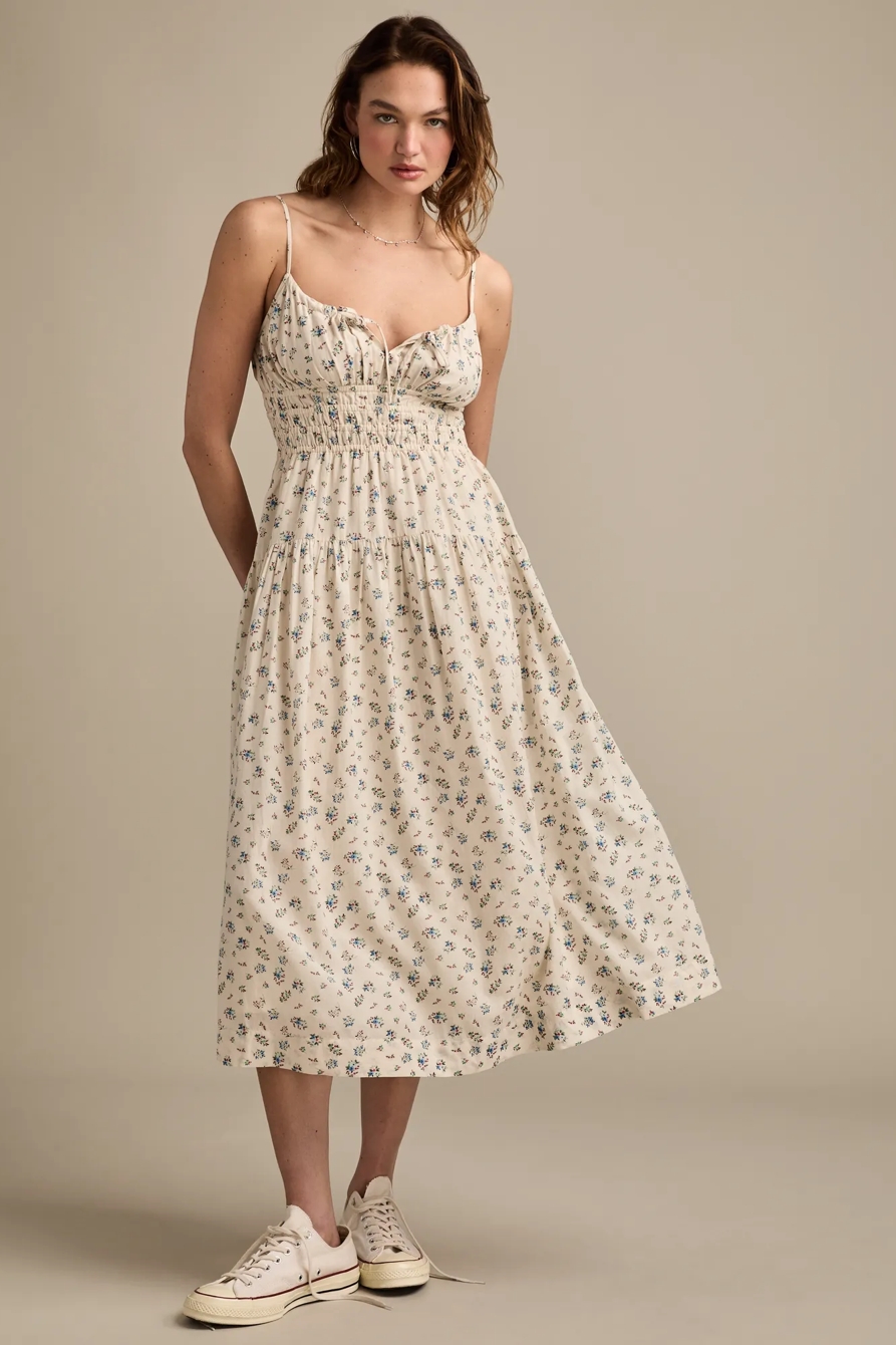 smocked waist midi dress