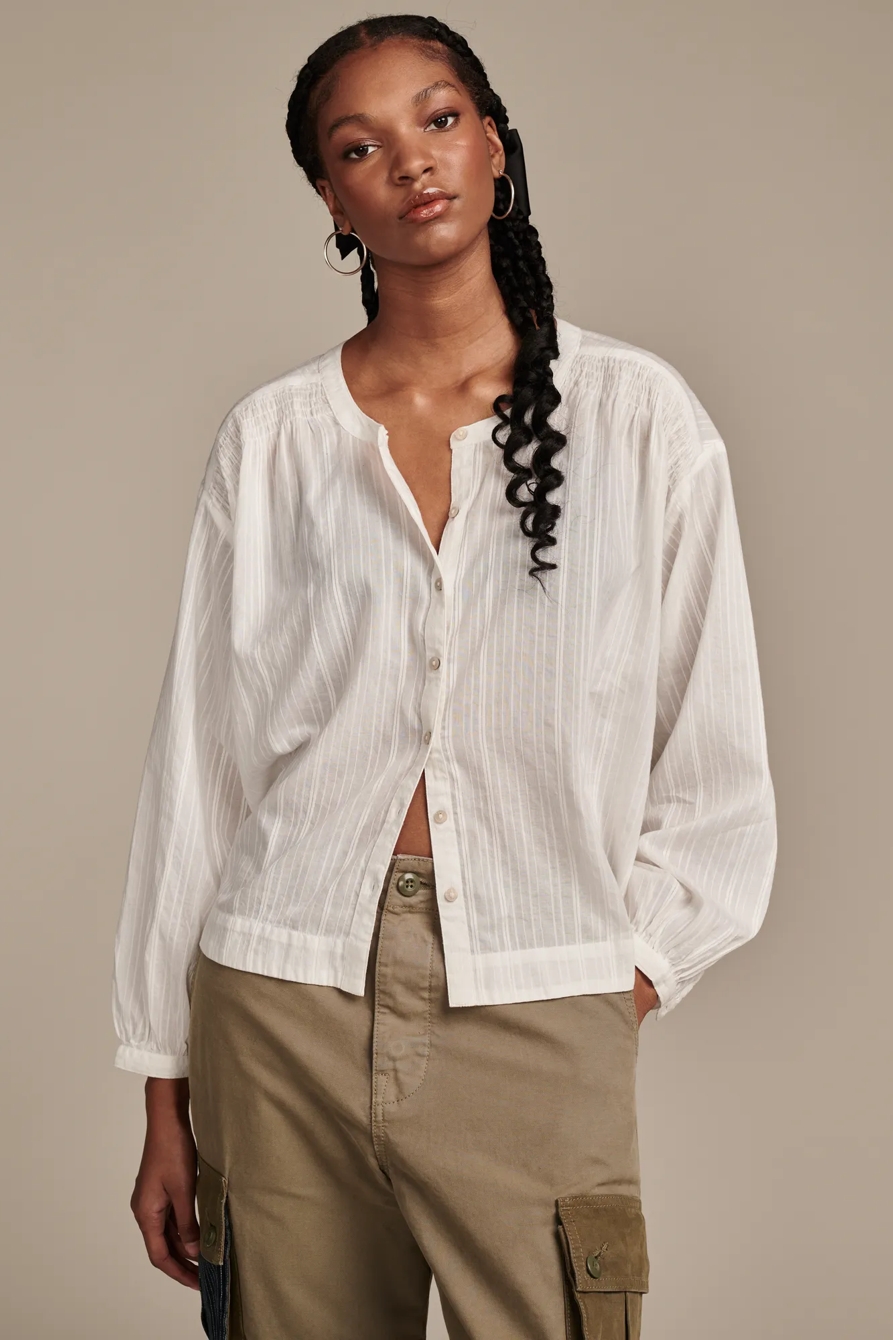 solid dobby smocked detail blouse