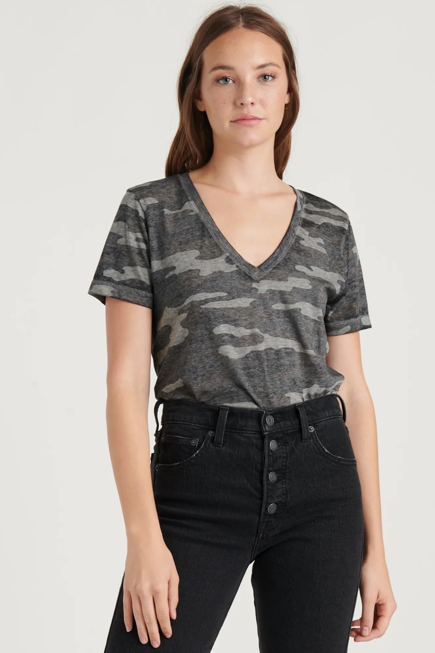 ss camo v neck tee