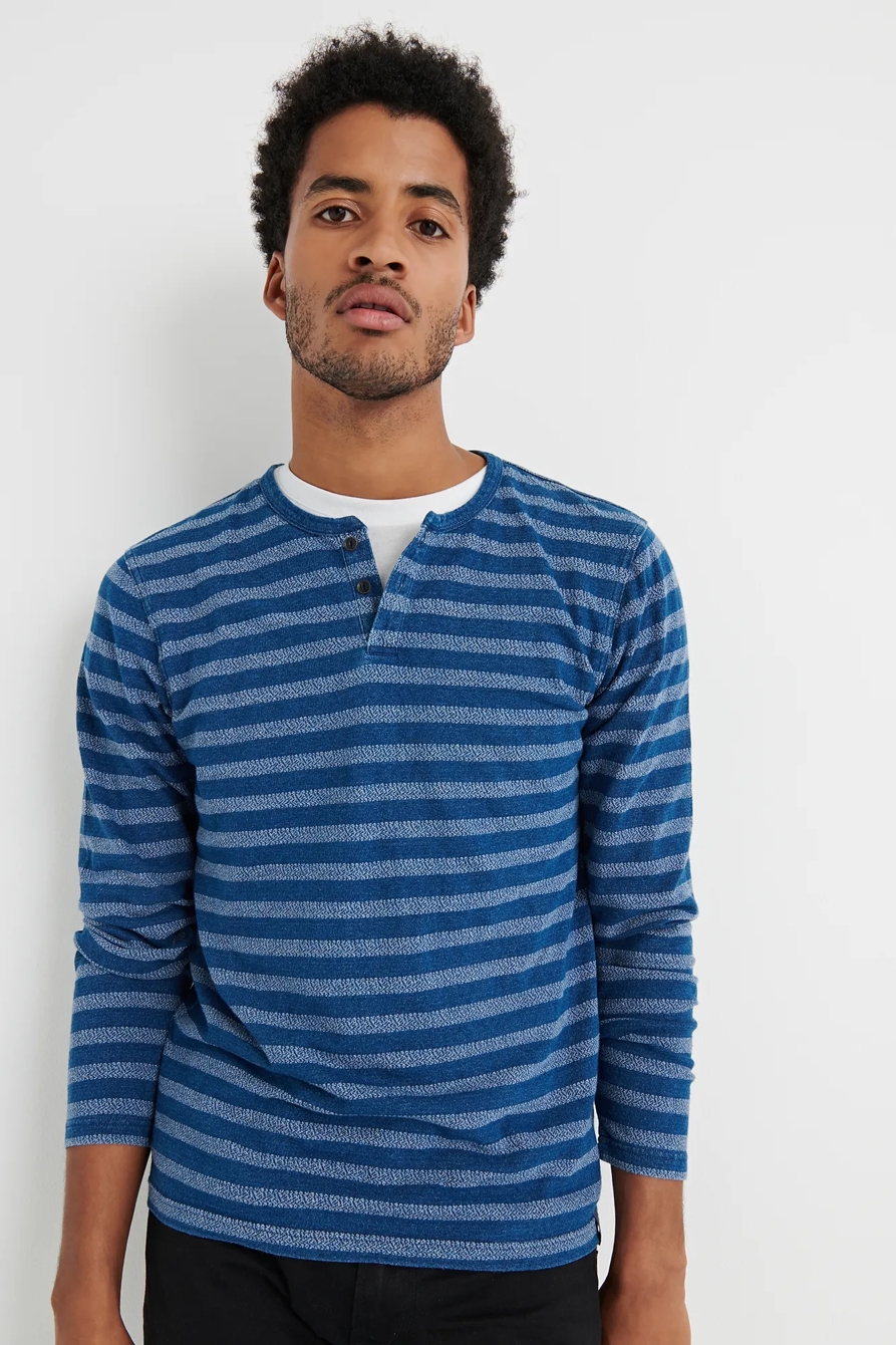 stripe indigo button notch