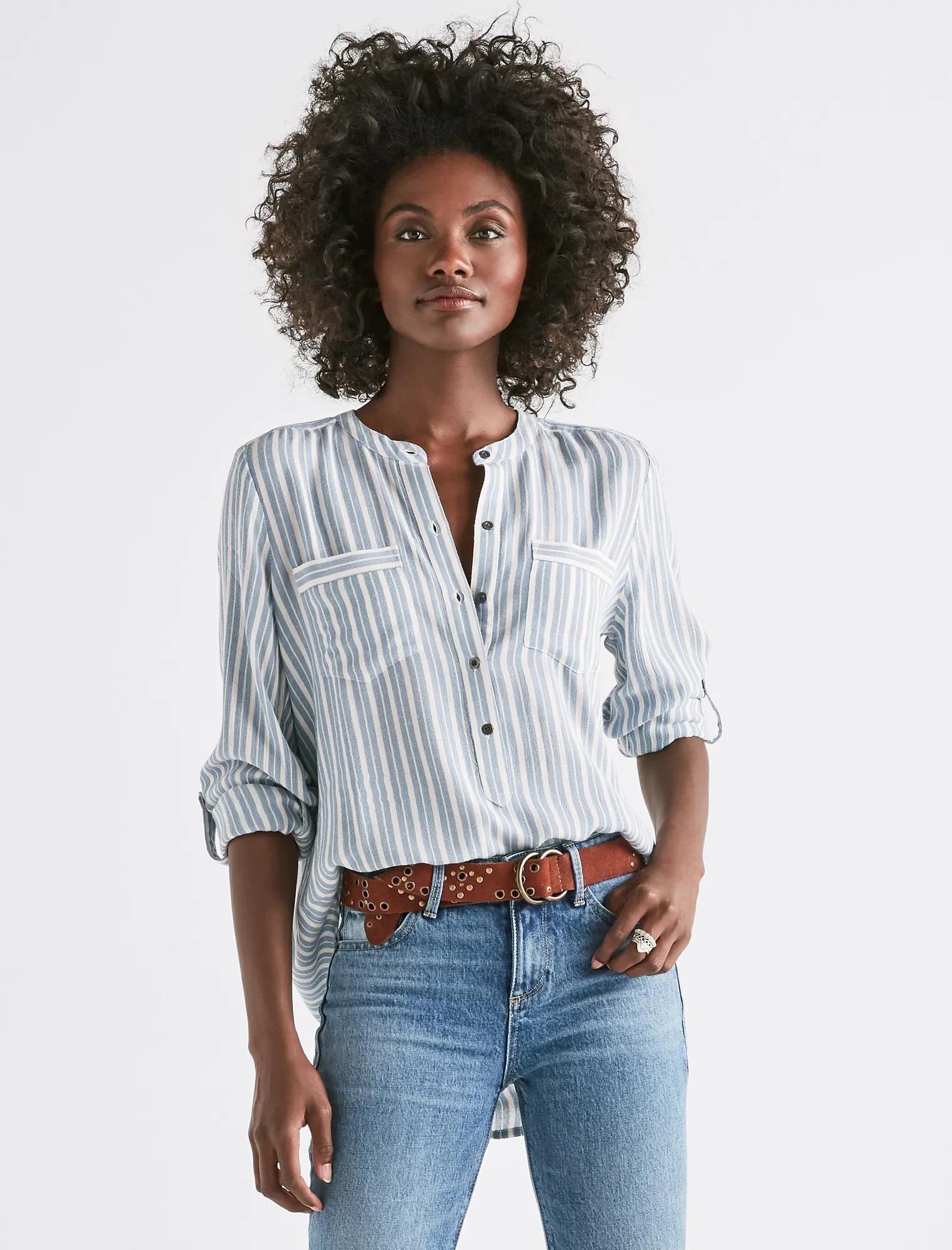stripe long sleeve button down shirt