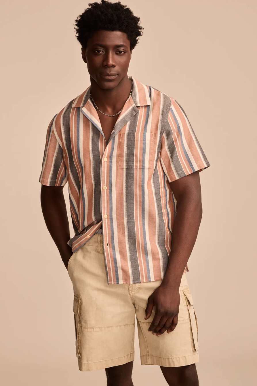 striped short sleeve camp collar shirt