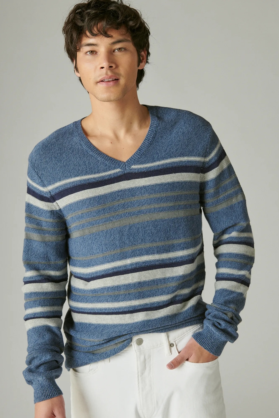 striped welterweight v-neck sweater