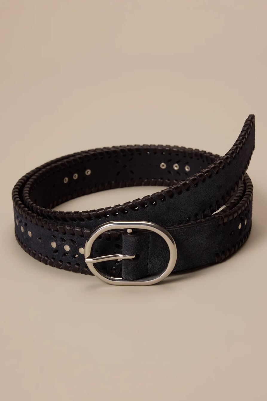 suede laced and studded leather belt