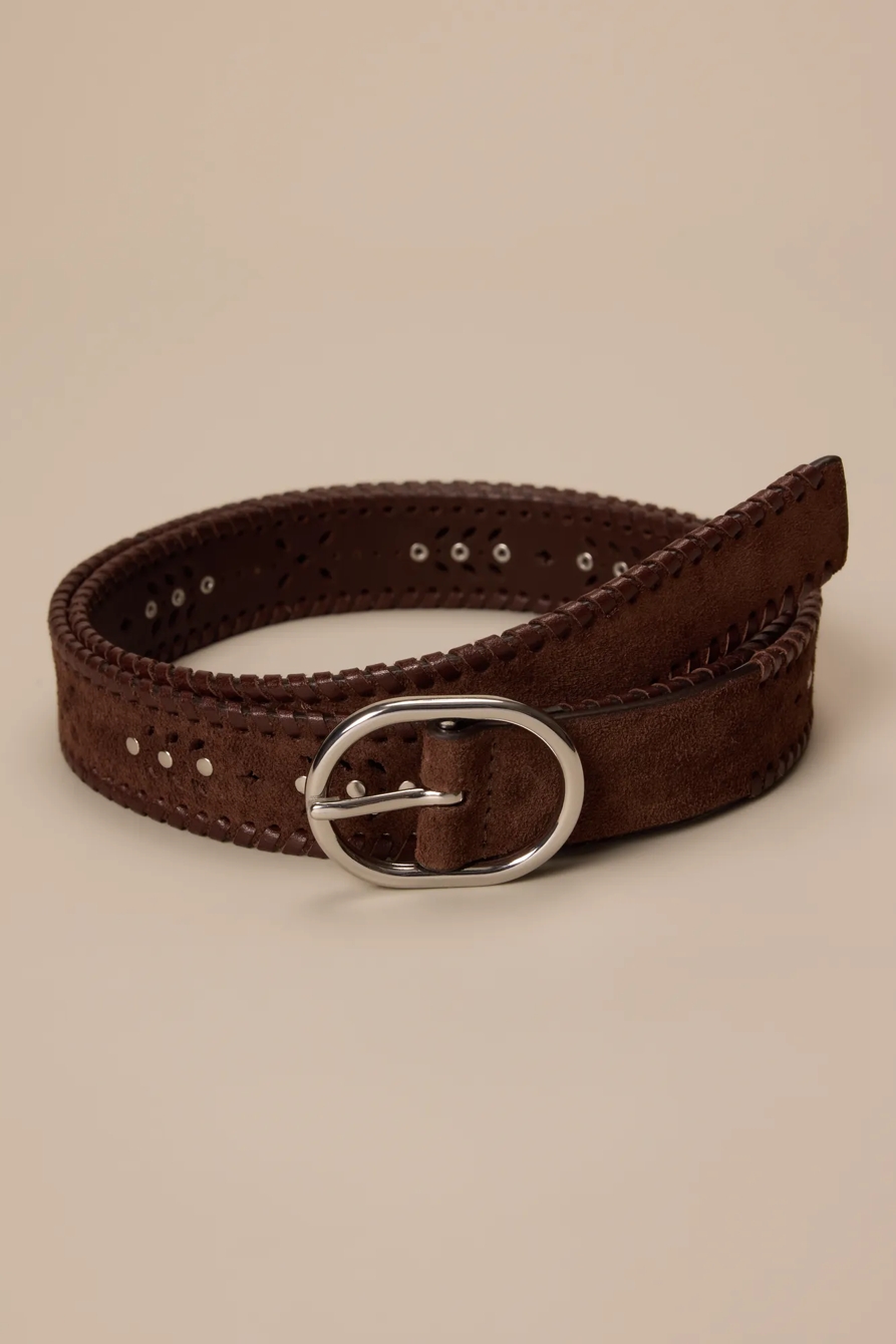 suede laced and studded leather belt