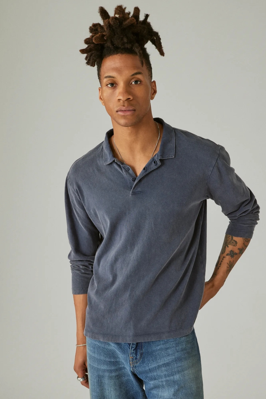 sueded jersey long sleeve polo