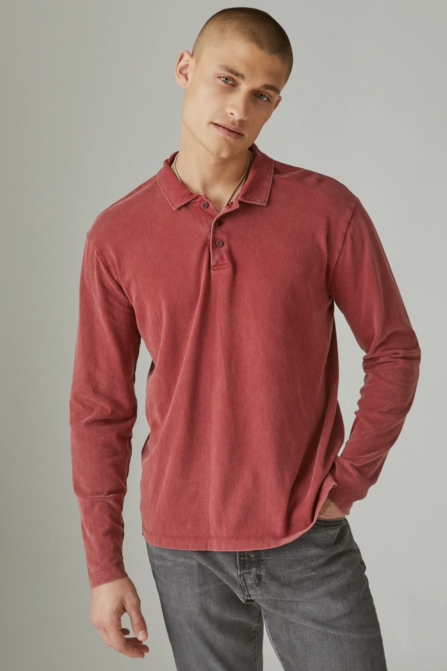 sueded jersey long sleeve polo