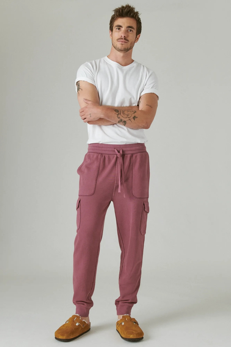 sueded terry cargo jogger