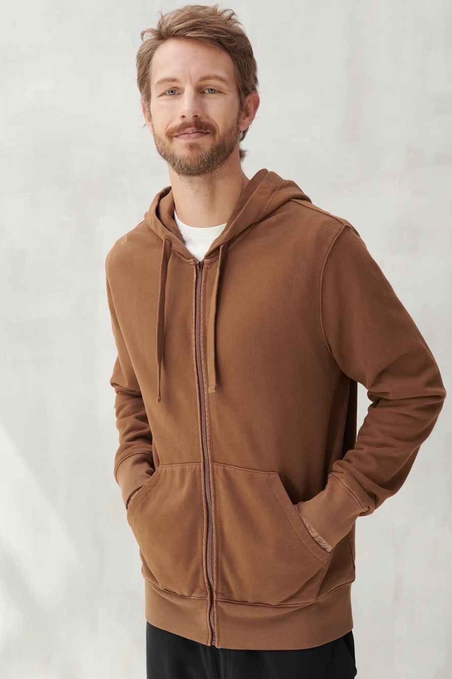 sueded terry full zip hoodie