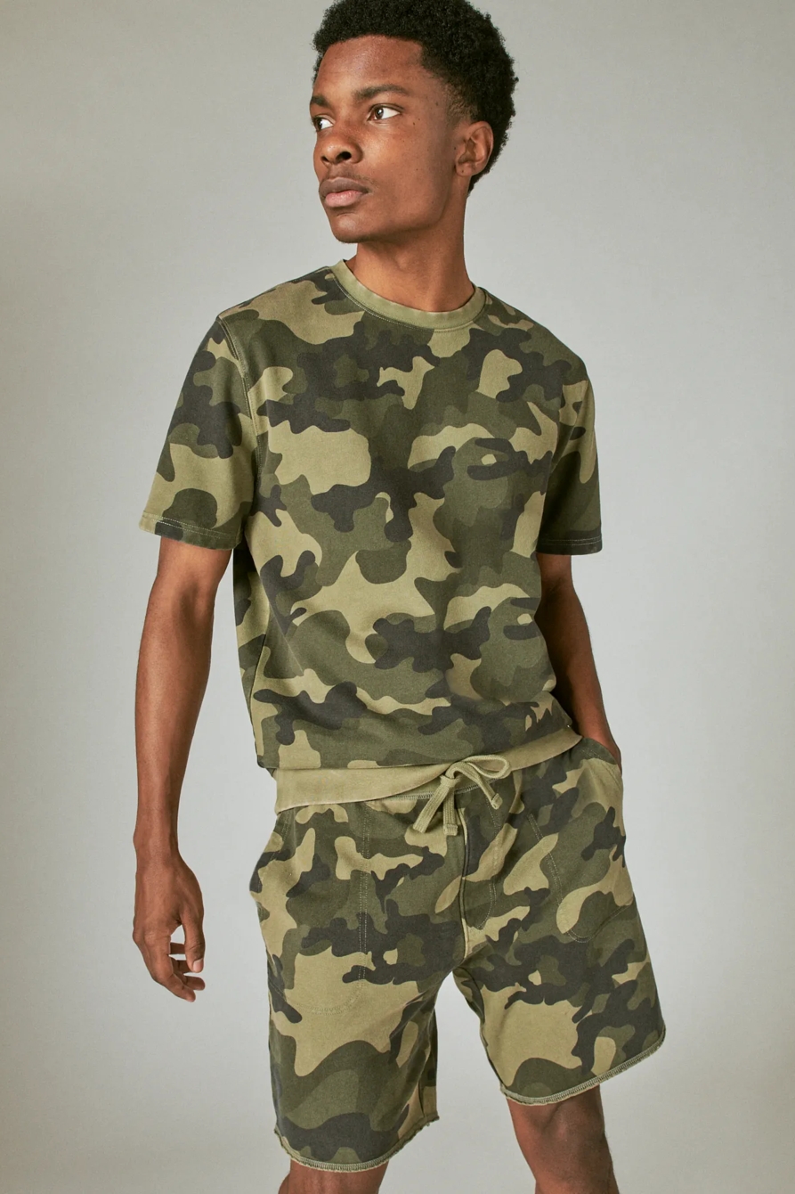 sueded terry short sleeve camo crew