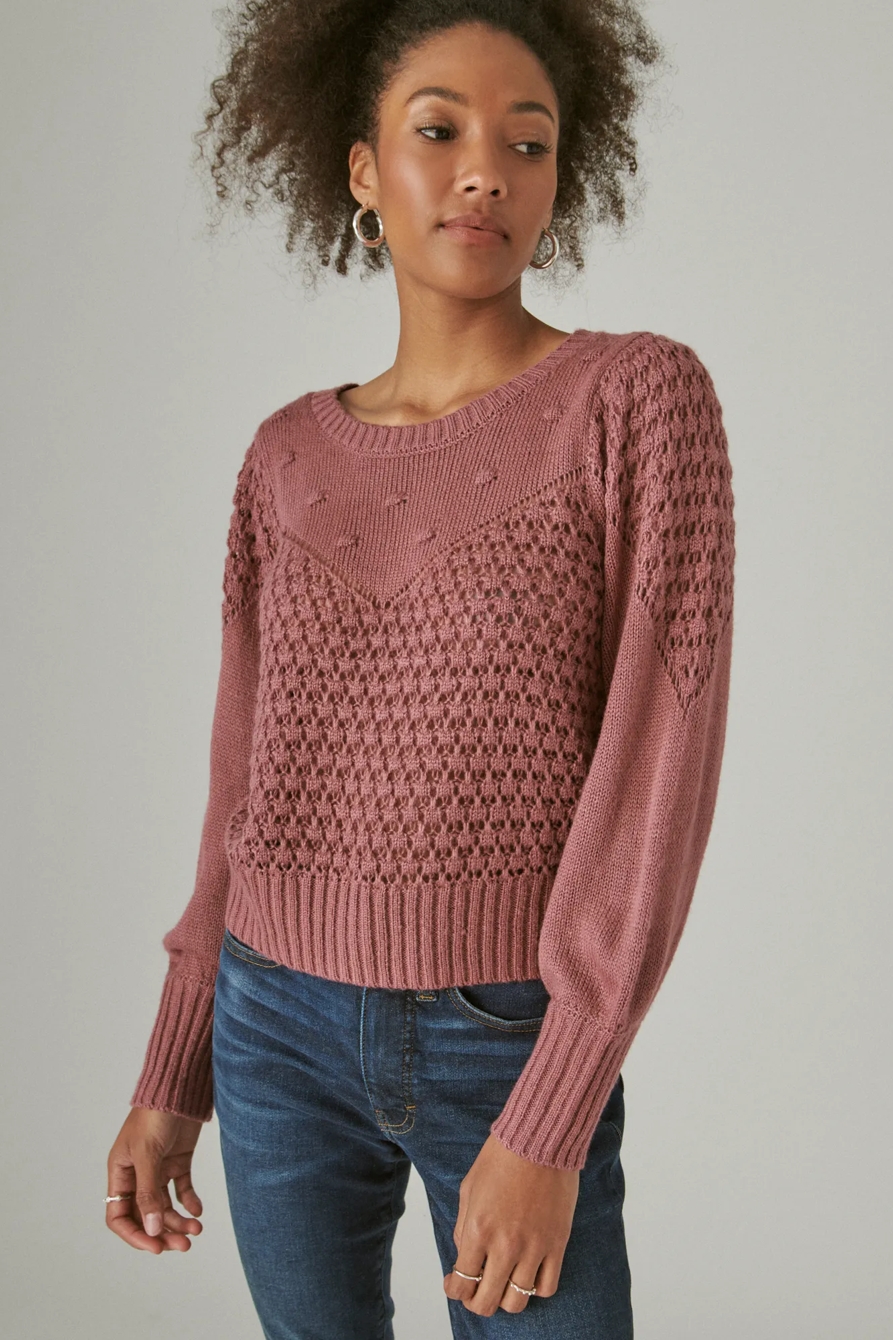 textured dot crew neck sweater